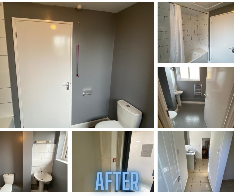 Complete refurbishment with new sanitaryware, tiling, waterproofing, flooring, and improved ventilation systems to meet current building standards.
